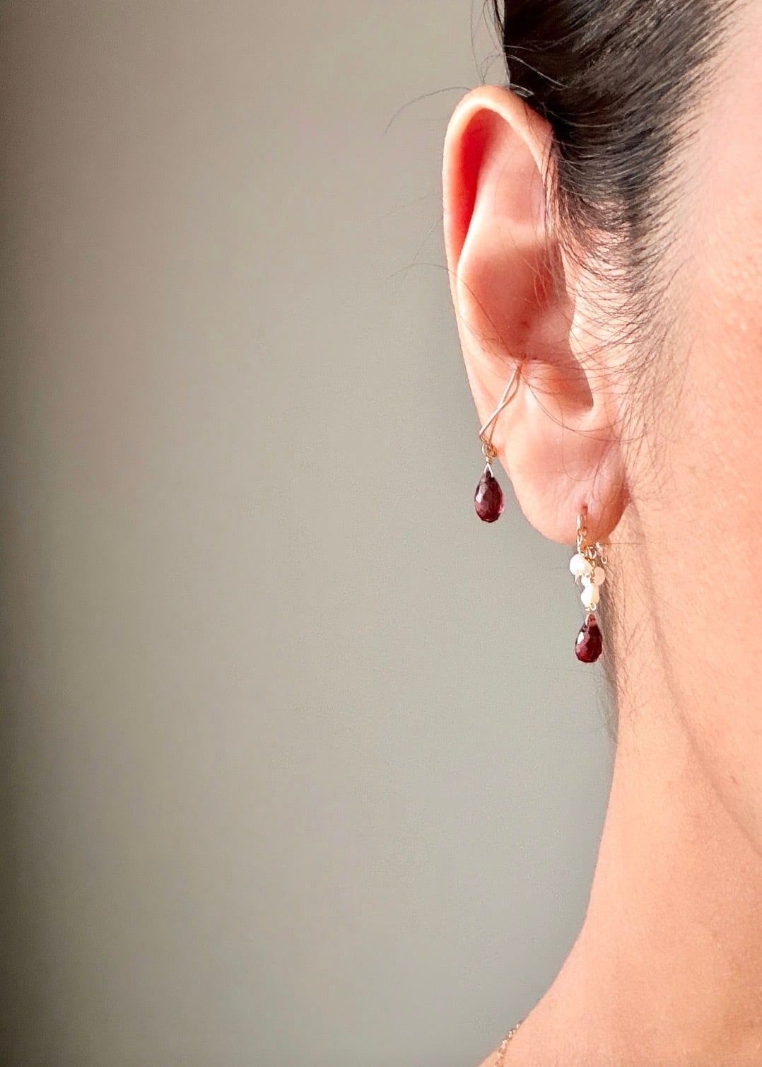 木の枝のイメージからデザインされているイヤカフに天然石をあしらったら