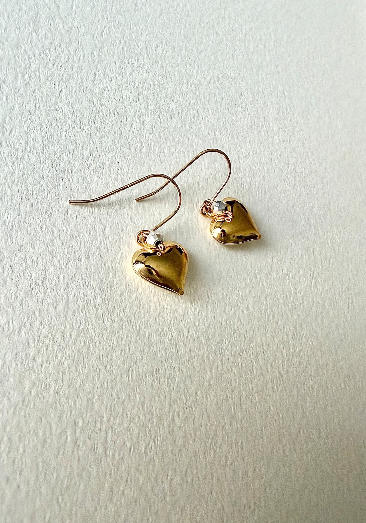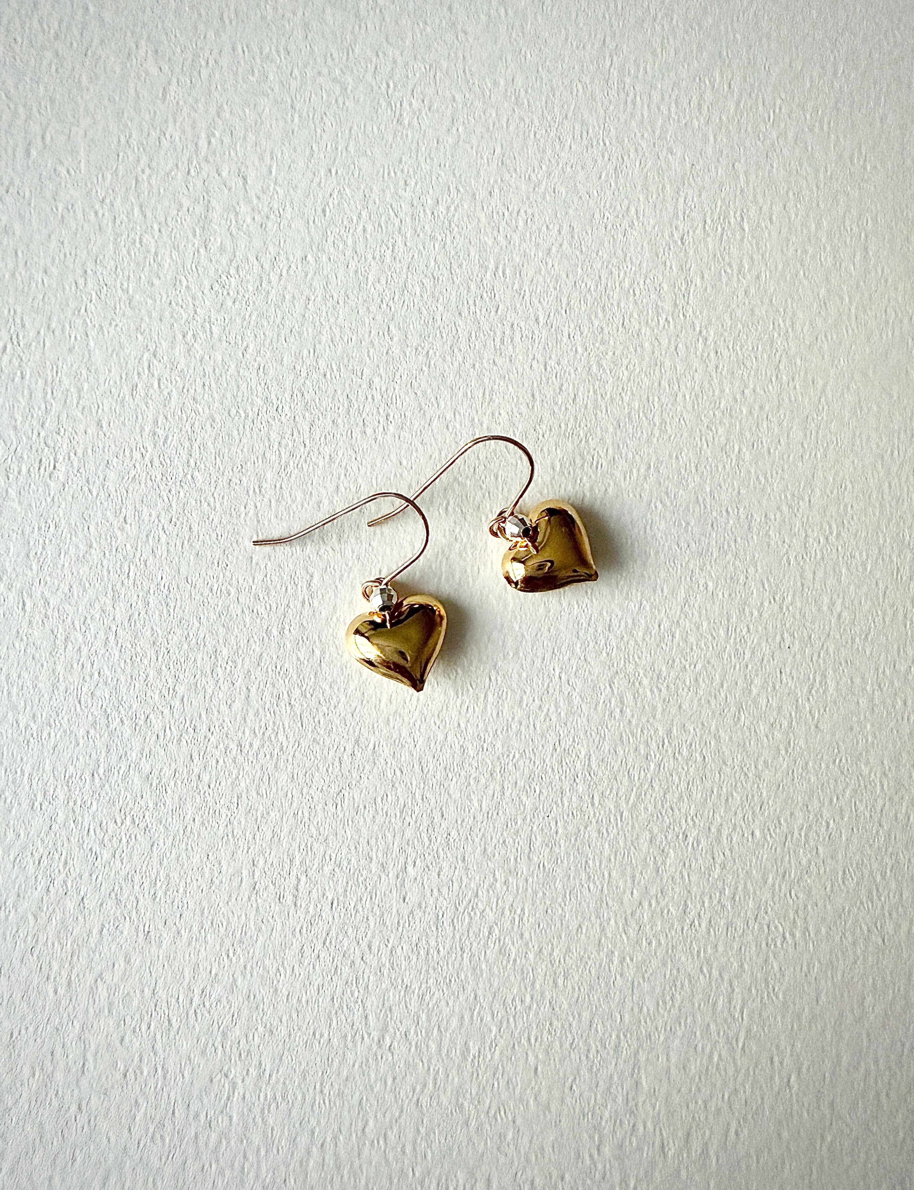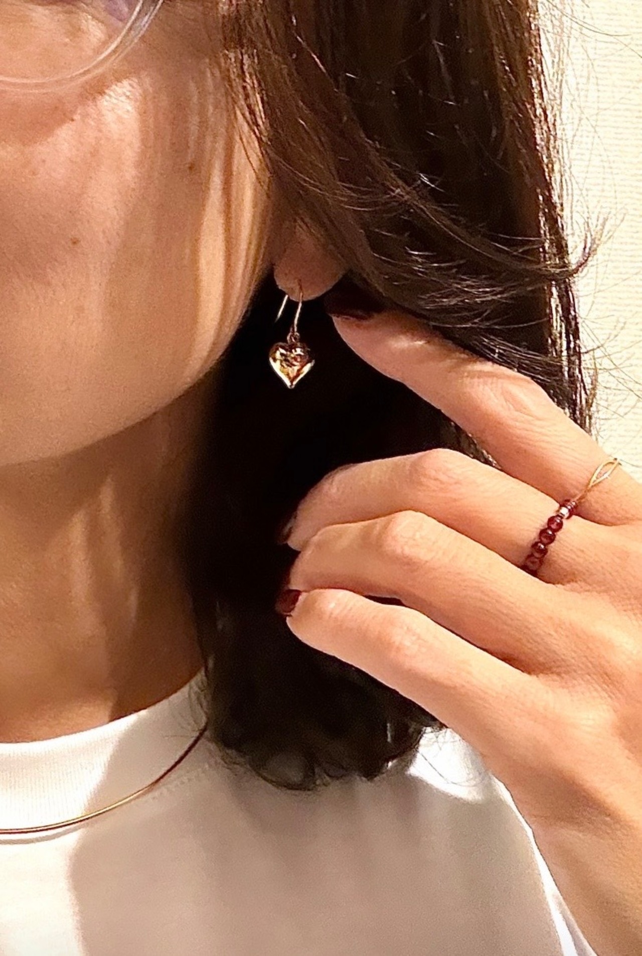 ゴールドのハートシェイプにシルバーの小さなミラーボールがさりげなく寄り添う
