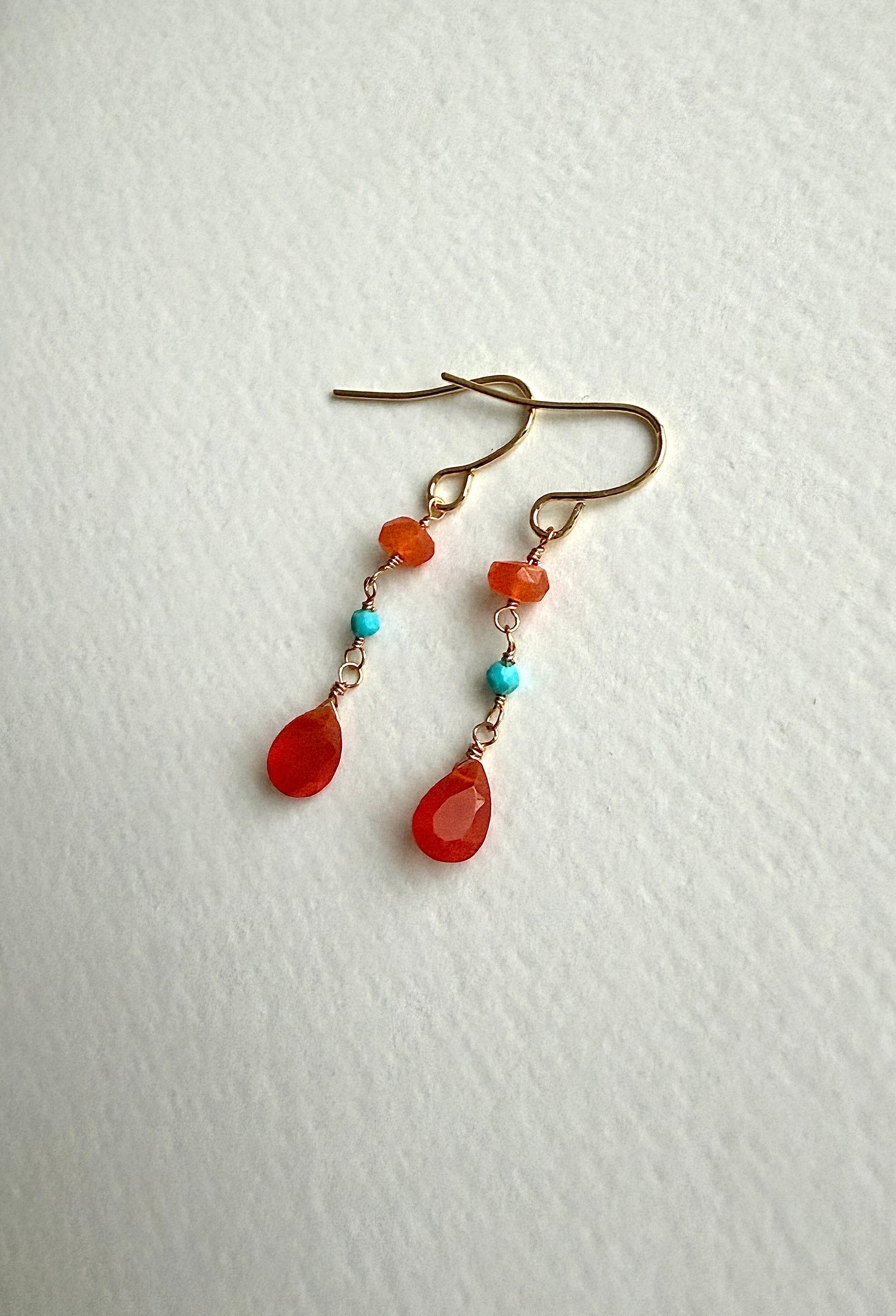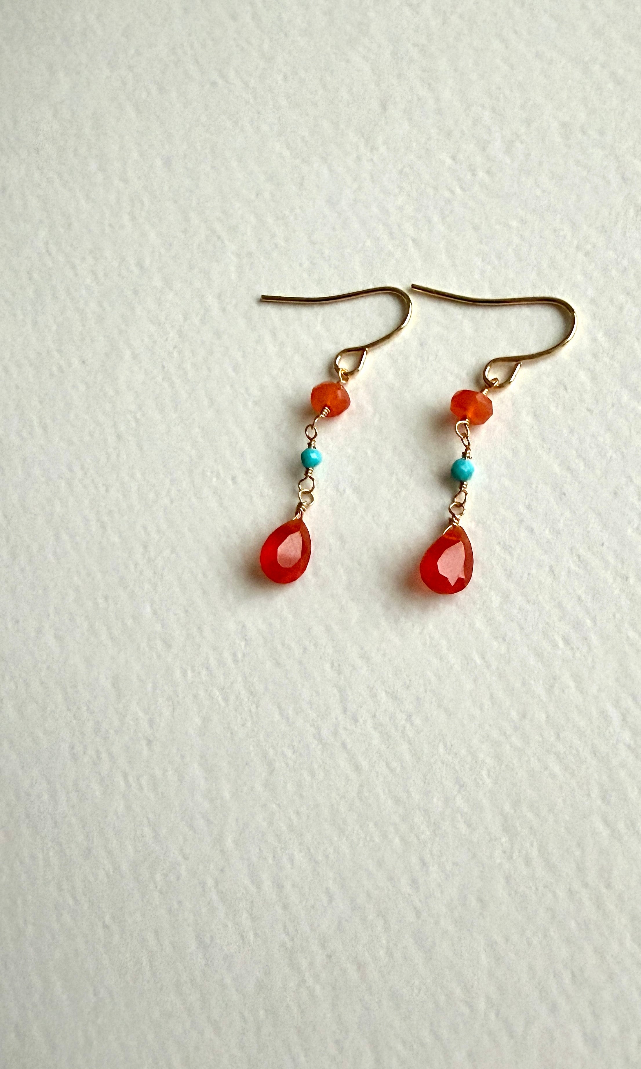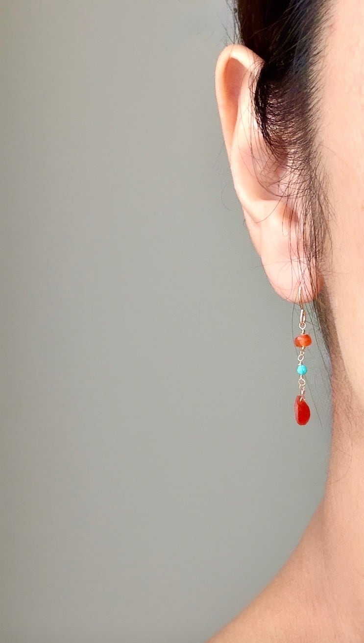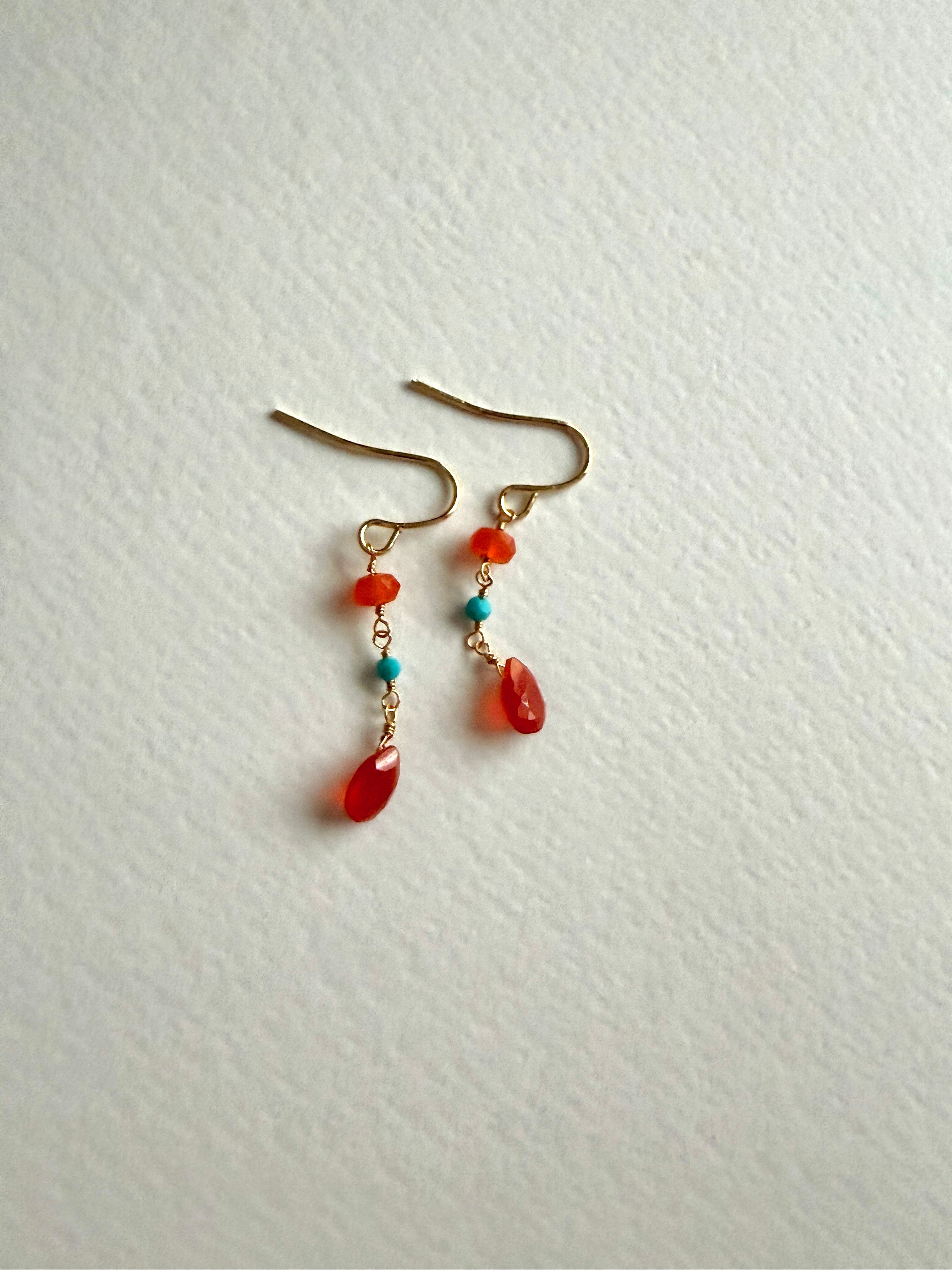 金属: 14kgf 素材: カーネリアン、ターコイズ サイズ: フック下約3cm