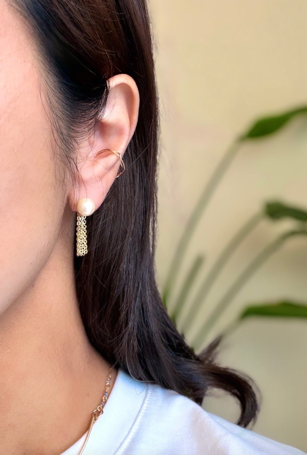 小さくお耳元で揺れるミニタッセル。