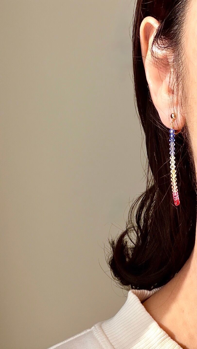 優しいレインボーカラーのクリスタルガラスが耳元でキラキラと上品に輝きます。